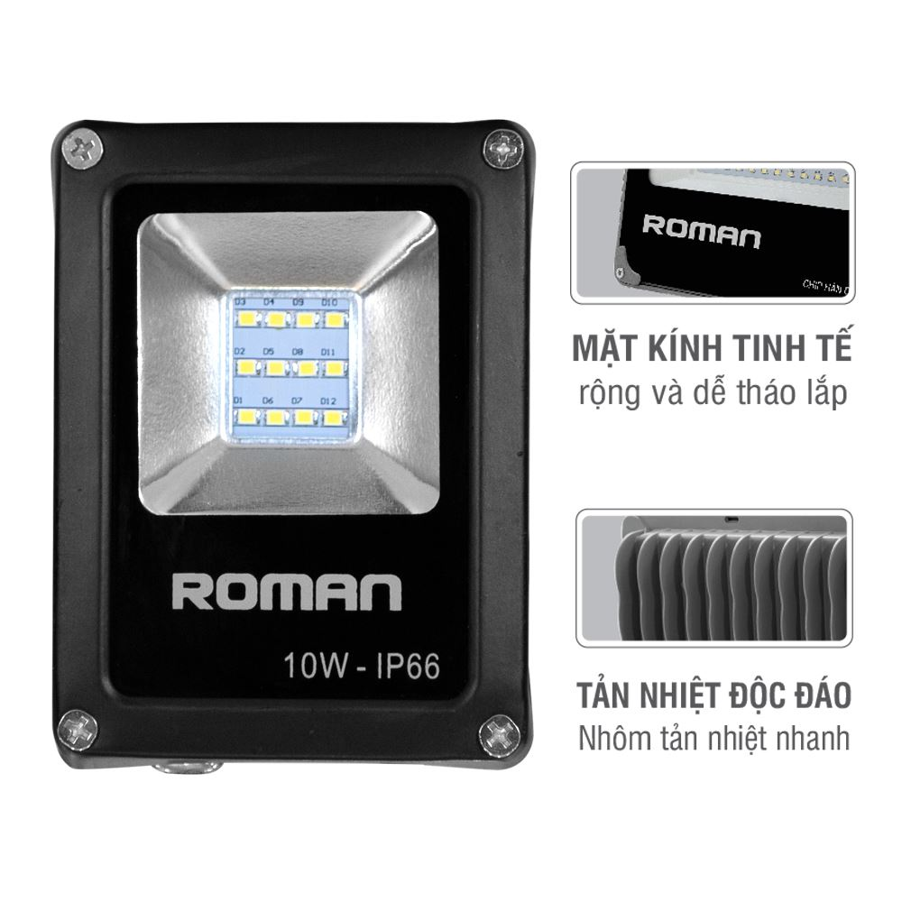 Đèn pha LED Roman 10W ELD1016 có bộ vỏ chất liệu nhôm đúc, sơn tĩnh điện, thiết kế tản nhiệt tốt. Nguồn sáng của đèn được làm từ các Chip LED Hàn Quốc có hiệu suất phát quang cao, tiết kiệm điện năng khi sử dụng lâu dài.